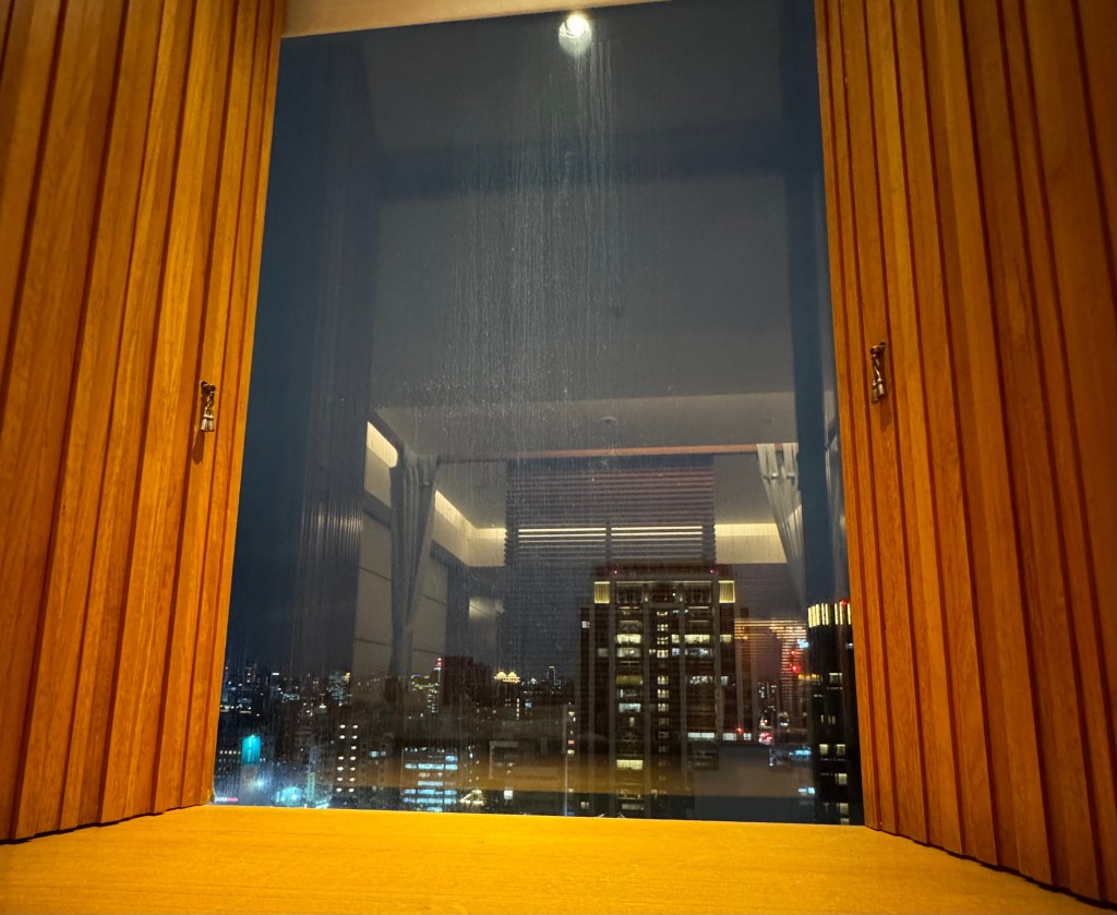 I’ve been allocated one of the Japanese rooms on the high floors – I have also lucked out and got a suite. The bedroom area is close to the windows, and features slatted blinds to close instead of curtains. There’s a futon, a small table and sitting area, and a bathroom containing separate shower, Japanese Bath and Japanese toilet – I am so excited for the Japanese bathroom experience, a Japanese toilet is such a wonderful thing 🙂