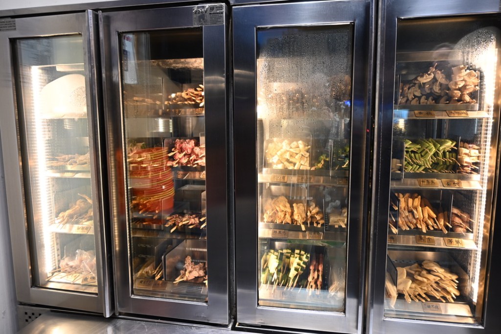 Our first stop in Shida Road is a branch of an amazing skewers shop called Jiao Tang Feng – similar to Yakitori in Japanese cuisine – you pick what skewers you would like from the huge fridge at the front of the shop…