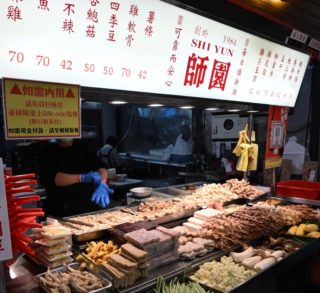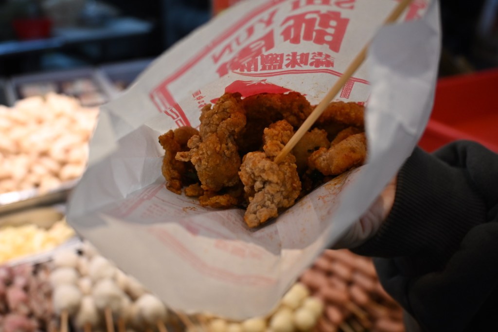 This shop has been here since 1984, selling amazing quality Taiwanese Fried Chicken – and also fried anything else you see in this picture – tofu, sausages, chicken necks and feet, thin chicken escalopes, veggies, corn, King Oyster mushrooms, cabbage, beans, meat patties, offal… you name it, they have it and will fry it!