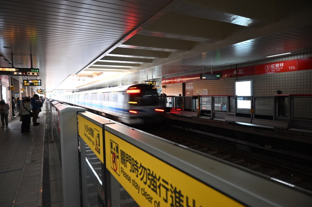 Hongshulin station, with a Xinyi-bound train departing the platform