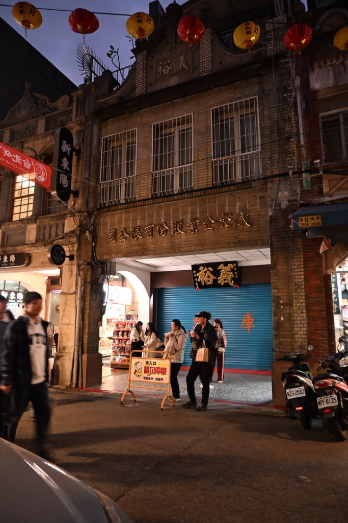 I took the Metro to Beimen station on the green Songshan-Xindian line, and went for a wander around Dihua Old Street – one of the oldest shopping streets in Taiwan, with a lot of the original 1850s architecture and shop fronts well preserved. The shops mainly sell dried goods with a few street food carts around. It’s a vibrant and busy area, with a large temple in the street and people paying their respects and lighting incense outside in the street.